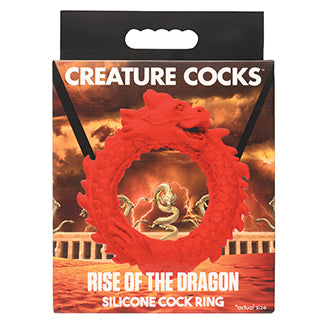 Enhance your rod with this red dragon! This Rise of the Dragon C-Ring is made out of super stretchy and plush silicone that is phthalate-free and body-safe. The brilliant red really stands out when you're wearing the ring and the little dragon encircles your shaft. It can fit over the shaft along or also be stretched to fit around the shaft and under the balls, too! It can enhance your playtime, increase the intensity of climax, and help you stay rigid for longer! Combine this with any fantasy roleplay or creative scene a little more fun!